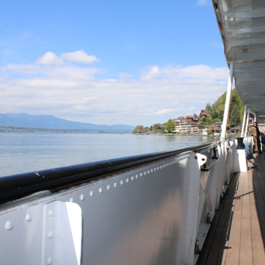 An Bord genossen wir die entspannte Atmosphäre auf dem Wasser, die frische Luft und die eindrucksvolle Aussicht auf die Berglandschaft. Die Fahrt führte uns weiter in Richtung Interlaken, wo uns ein feines Zmittag erwartete wie auch der Car für die Rückfahrt zum Luegenacher.
