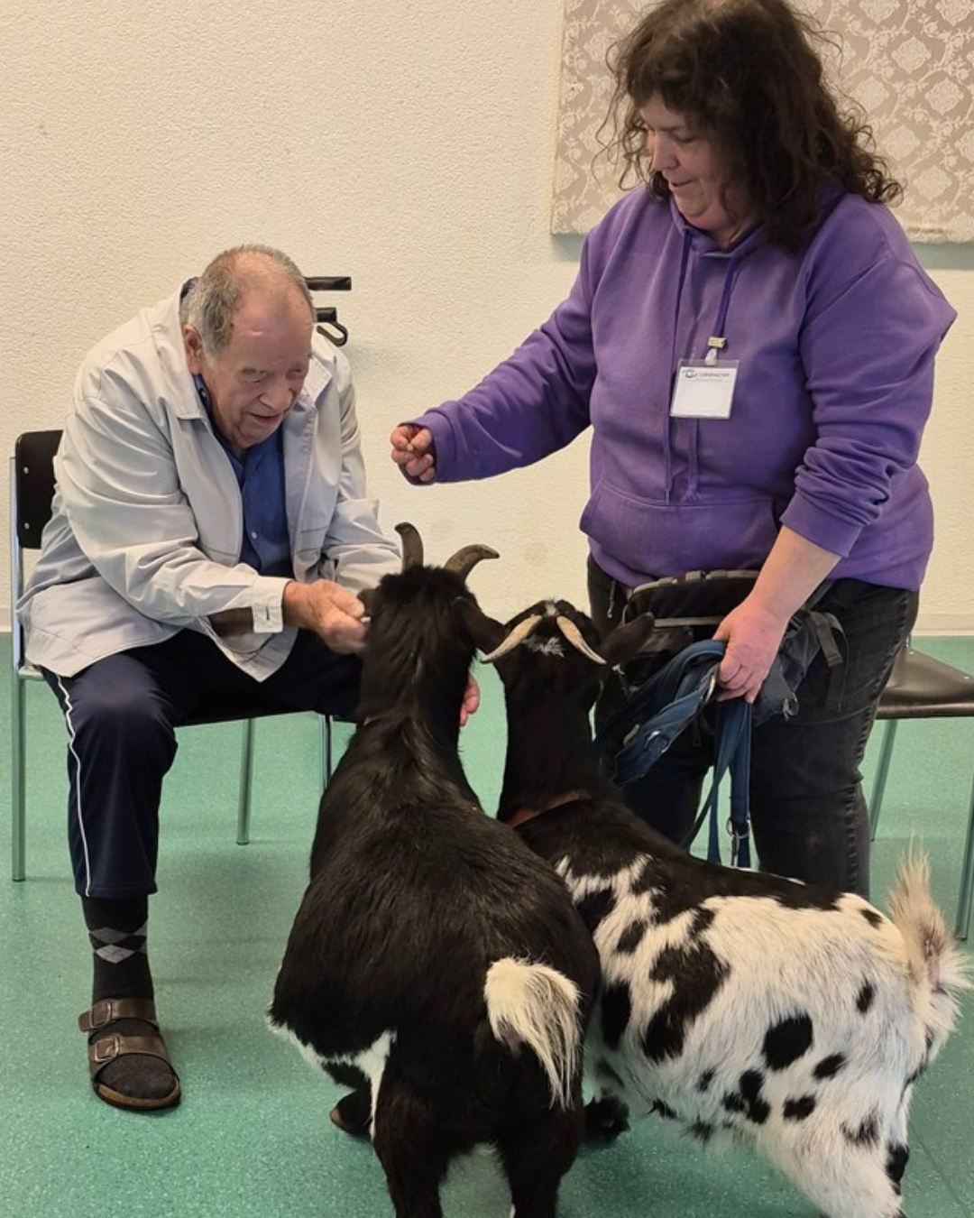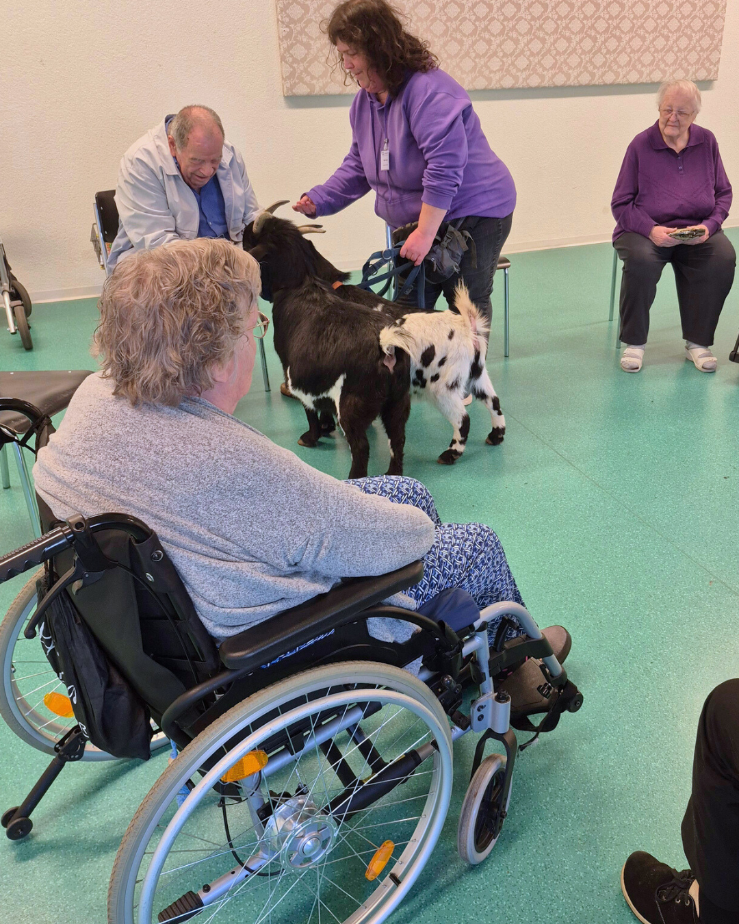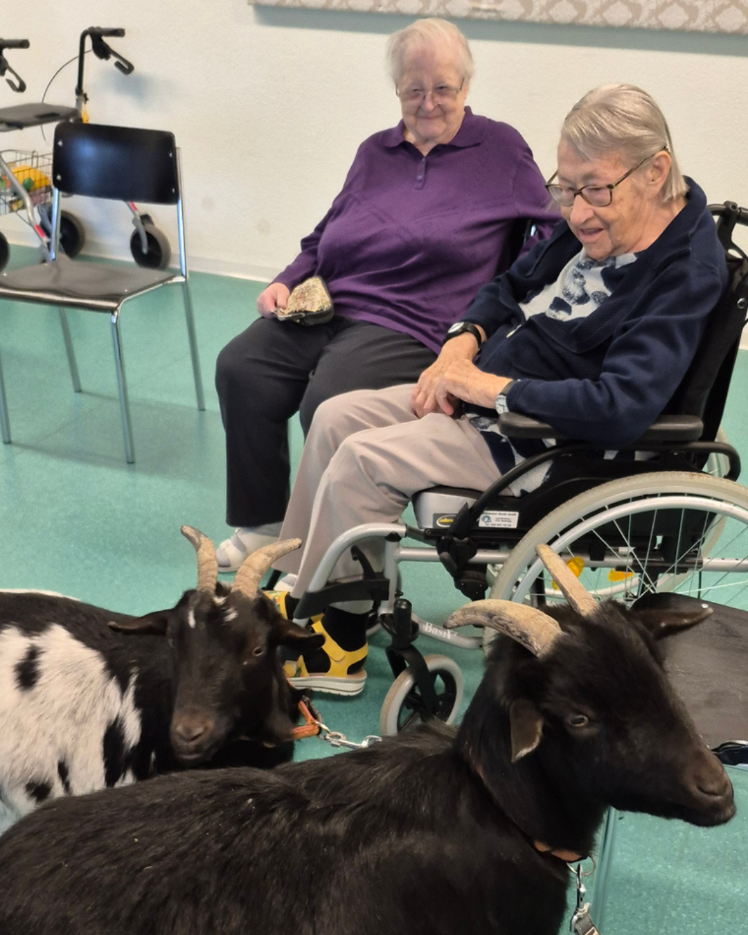 In diesem Rahmen waren kürzlich zwei Geissen bei uns zu Gast. Mit ihren kleinen Kunststücken sorgten sie für viel Staunen und gute Laune. Besonders schön war es natürlich, die neugierigen Tiere aus nächster Nähe zu erleben und zu streicheln.
