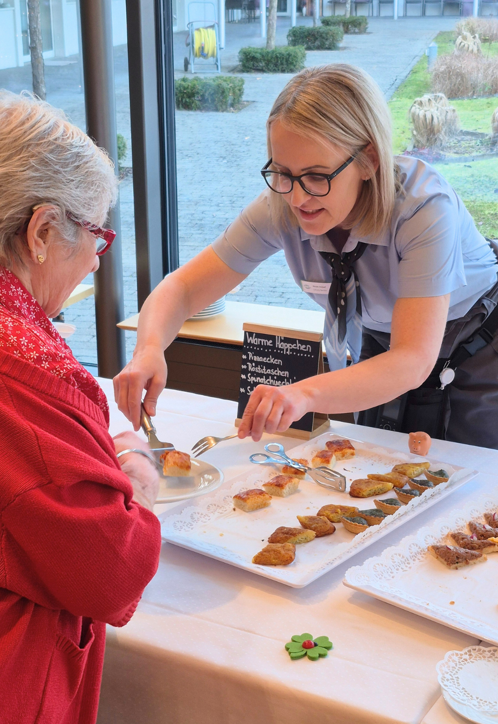Die Zentrumsleitung eröffnete den Apéro mit einer persönlichen Ansprache und überbrachte allen Anwesenden herzliche Neujahrswünsche. Danach wurden bei gemütlicher Atmosphäre feine Canapés, süsse Köstlichkeiten wie Berliner und frische Fruchtspiessli serviert. Dazu gab es erfrischende Getränke, mit denen auf Gesundheit und viele schöne Begegnungen im neuen Jahr angestossen wurde.