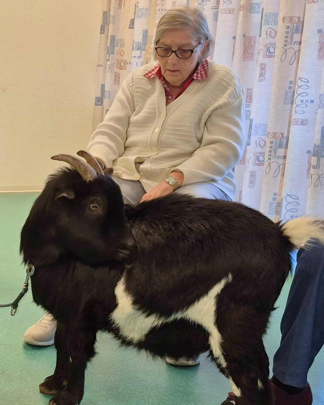 In diesem Rahmen waren kürzlich zwei Geissen bei uns zu Gast. Mit ihren kleinen Kunststücken sorgten sie für viel Staunen und gute Laune. Besonders schön war es natürlich, die neugierigen Tiere aus nächster Nähe zu erleben und zu streicheln.